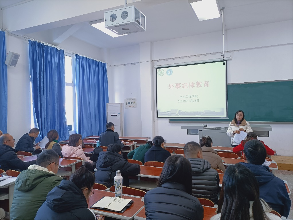 党总支副书记张小梅对学校外事工作要求、师生对外交往常识、礼仪和常见的问题及应对作了指导,强调老师们要严肃纪律,增强外事意识,始终维护民族尊严和国家利益,维护国家和学校形象,确保政治安全。