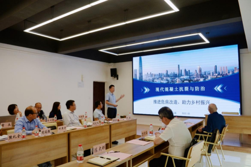 座谈会上,参会领导和专家还对已开展的工作、相关技术运用推广和后续合作进行了讨论和研究。何建对2021年我院与中心合作的房屋安全隐患排查工作进行了总结,并提出了2022年该项工作的改进思路和计划。郭远臣从背景意义、开裂类型、防治措施和科研命题四个方面介绍了现代混凝土的抗裂与防治技术。熊礼全博士对个人最新研究成果“可装配、可拆卸钢-混凝土组合梁的受力行为研究”做了汇报。