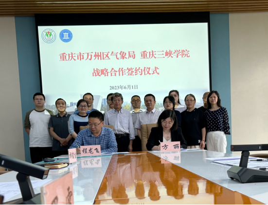 6月1日下午,我院与重庆市万州区气象局战略合作签约仪式在慎思楼5栋520会议室举行,学校党委常委副校长祁俊生、学院领导班子、万州区气象局书记(局长)李剑、副局长方丽等参加了签约仪式,会议由学院党总支书记罗雪主持。