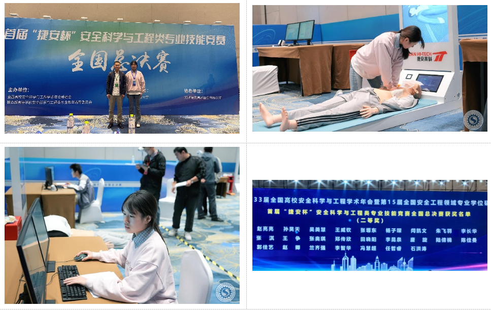 在全国总决赛中,经过双重预防机制建设、现场应急救护两部分的比拼,陈佳曼同学最终获得首届“捷安杯”安全科学与工程类专业技能竞赛全国总决赛二等奖。
