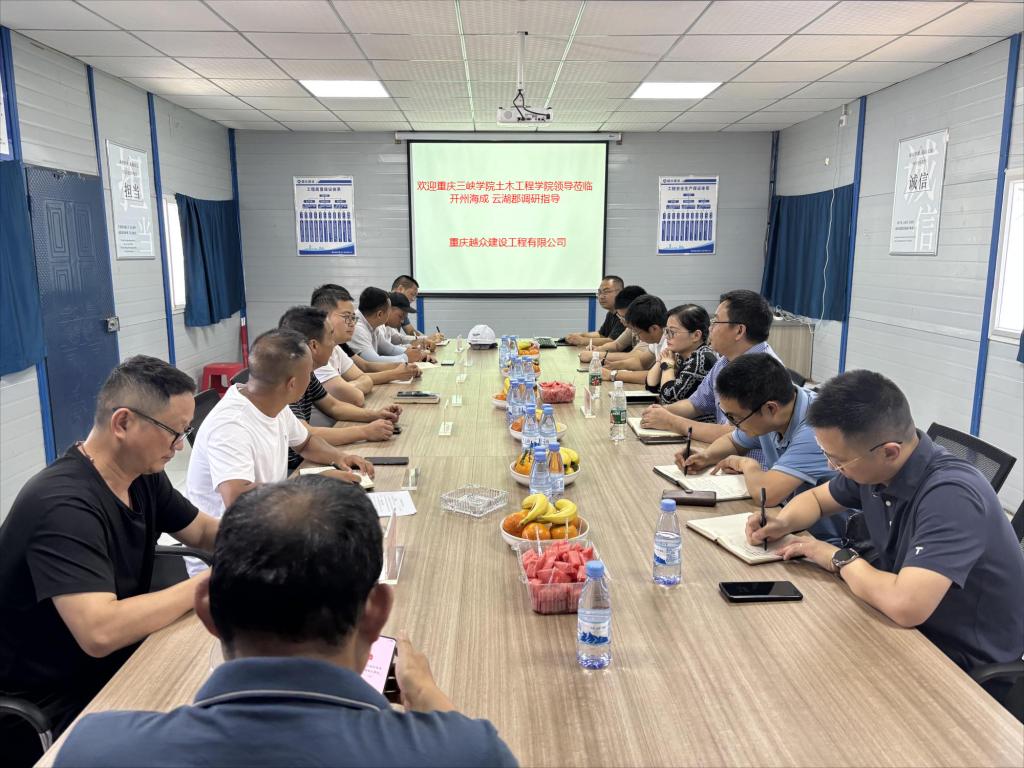 在调研过程中,先实地走访了中铁一局在开州的观音山隧道项目,重庆越众建设工程有限公司云湖郡房产项目,后与企业负责人、一线技术人员进行了深入的座谈交流,全面了解企业对人才的需求和当前人才培养的现状。