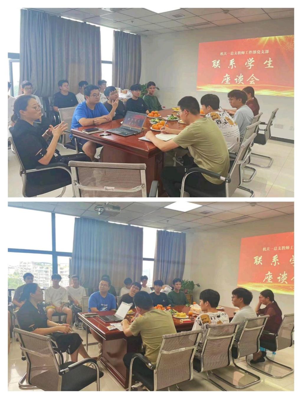为健全“三全育人”工作体系,认真落实领导干部深入基层密切联系学生工作制度,打造组织有序、上下联动的合力育人态势,引领学生成长成才。6月13日下午,学校党委委员、人事处处长黎平在科技楼701,与联系的44118太阳成tyc城集团2022级土木工程3班、安全协会、蓝雾苑1舍6091的学生代表开展交流座谈。人事处副处长郭兰、赵滟及44118太阳成tyc城集团辅导员李浪参与座谈,会议由人事处综合科科长钟雨含老师主持。