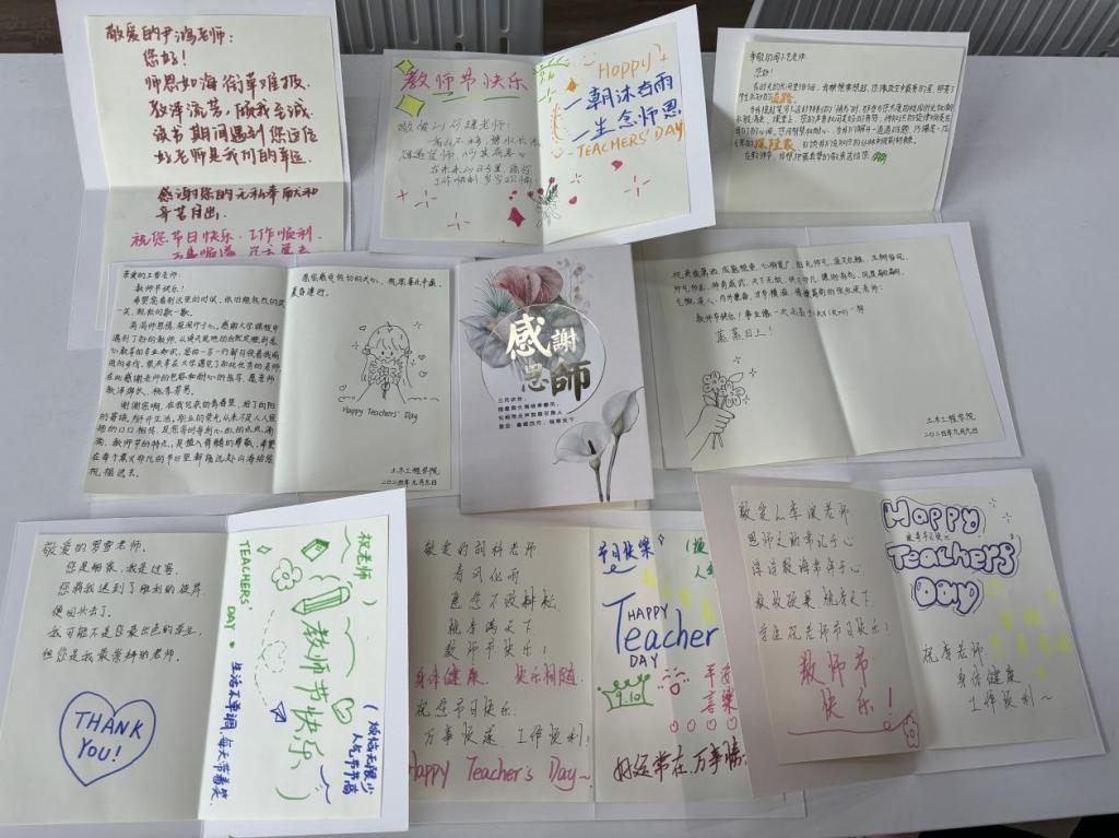 学生代表为教师送上亲笔书写的节日贺卡,贺卡满满承载了学生的感激与爱戴之情。