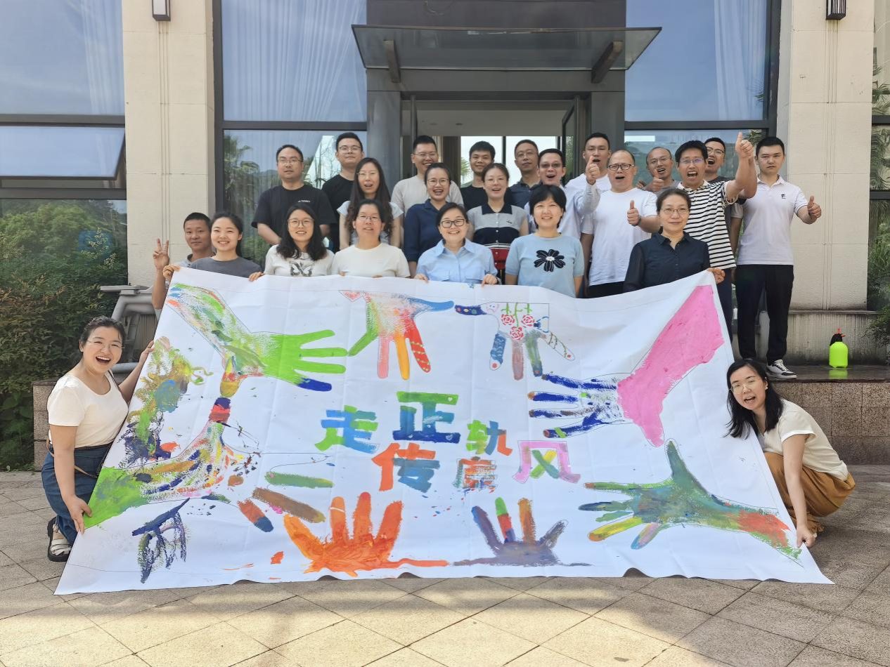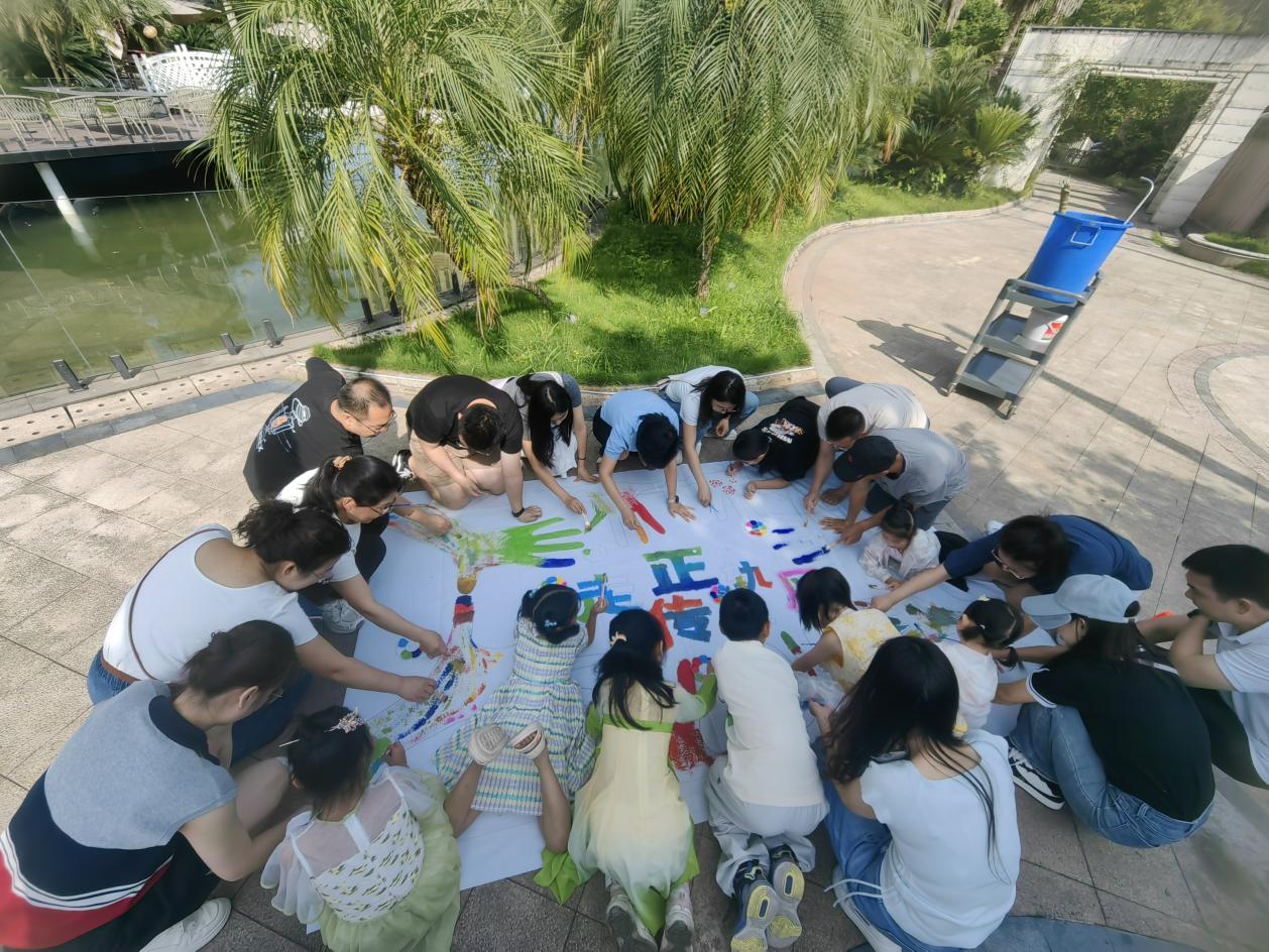 “廉奉公,赢未来”。将气氛推向高潮,全体教职工及家属共同完成一幅印有“走正轨 传廉风”字样的巨画。每一笔、每一划都凝聚着大家对廉洁文化的深刻理解和坚定信念,也展现了大家共同致力于营造风清气正校园环境的决心和行动。同时,家属的参与使得廉洁教育不仅局限于教职工个人,更延伸到了家庭层面,这有助于形成家校共育的良好氛围,让廉洁文化在家庭中得到更好的传承和弘扬。
