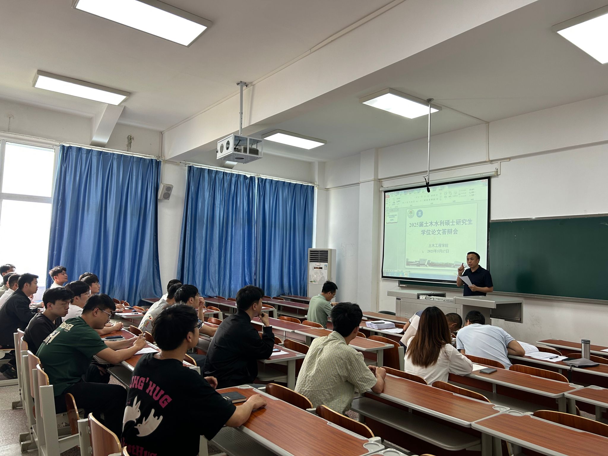 5月17日下午,我院2025届土木水利硕士研究生学位论文答辩工作在慎思楼5栋520会议室和523教室同步进行,本次答辩会邀请了重庆安全技术职业学院孙辉副教授、重庆市万州区规划和自然资源局蒋光强高级工程师、中交一公局第三工程有限公司王起龙高级工程师和荣传龙高级工程师担任校外评审专家,闫磊教授、邹建华教授、董利飞教授、何建副教授、熊礼全副教授、魏兴副教授担任校内评审专家,答辩秘书由郭正超副教授和姜开渝博士担任,学院2025届24名硕士研究生参加了此次答辩会。