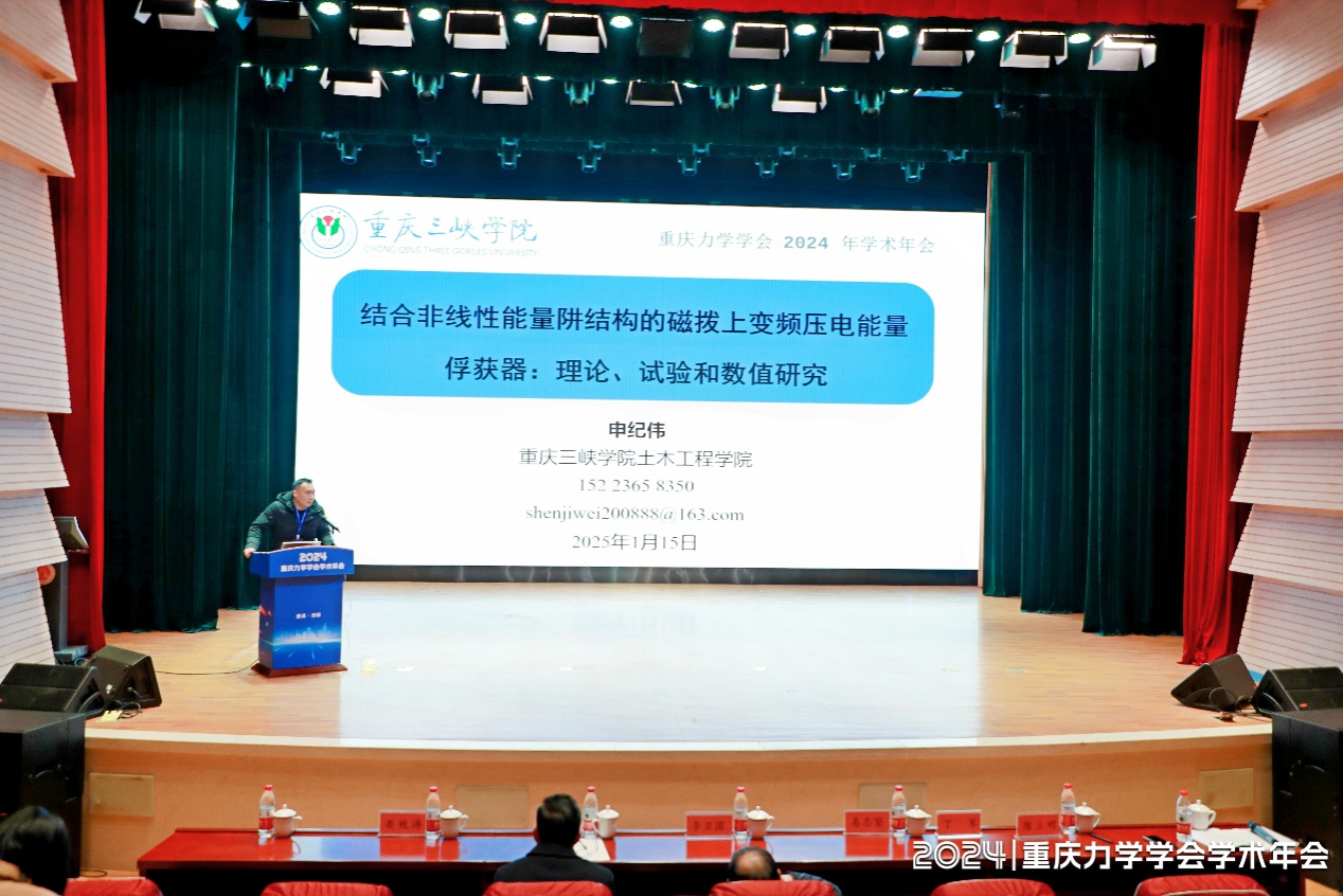 在会上,学院刘芳平副院长获得第三届重庆市大学生力学竞赛优秀组织工作者。青年教师申纪伟做了题为“结合非线性能量阱结构的磁拨上变频压电能量俘获器”的学术报告,分享了近期在桥梁智能监测领域的研究成果。