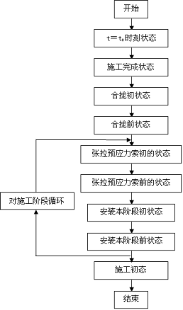 (1)确定结构初始状态。主要包括:中跨、边跨的大小、桥面线形、桥墩的高度、横截面信息、材料信息、约束信息、预应力索信息、混凝土徐变信息、施工临时荷载信息、二期恒载信息等;