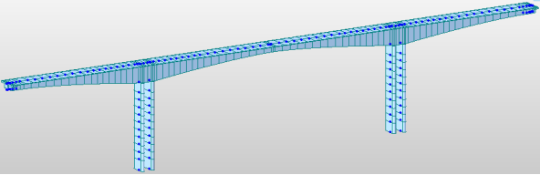 (3)在每一个桥墩上对称地依次悬臂浇筑各个块件,直到悬臂浇筑完成,挂篮拆除。计算每一次悬臂浇筑时结构的变形和内力。每一阶段计算均依照上一阶段结束时结构变形后的几何形状为基础;