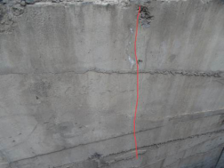 照片5-31 坎坎河桥0#台前墙竖向裂缝