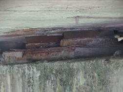 照片 5-18 万元造纸厂高架桥3-3-2#支座钢板锈蚀、破损