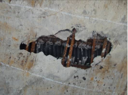 照片 5-9 入城大道4号桥L1#跨梁底板空洞露筋、露波纹管