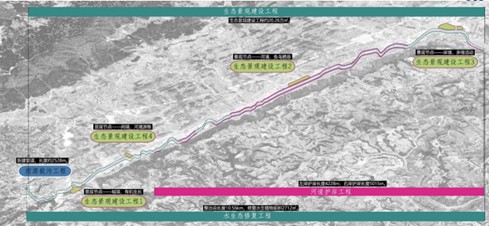 瀼渡河因长期纳污,积存了大量高浓度的污染物,水质要真正改善,还需要一段时间的自我修复及自净过程。针对瀼渡河的特点,本方案主要采用自净强化措施、水生植物生态系统构建、人工湿地等综合措施,修复和改善河流水质。水生态修复工程修复水生植物面积8.5万m2。
