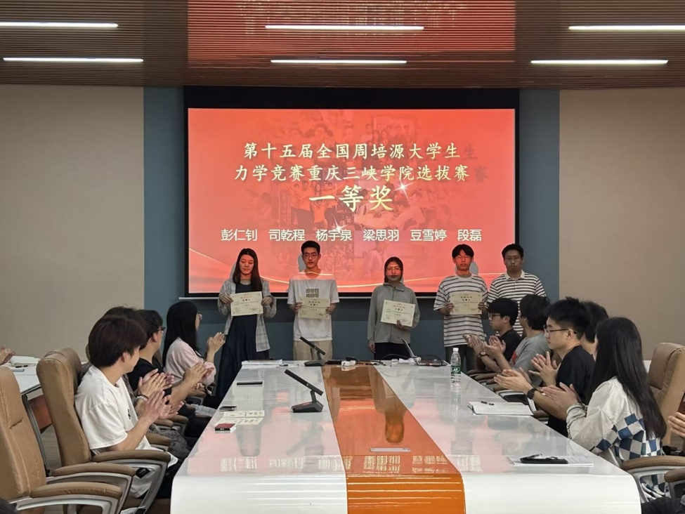 首先,刘芳平为荣获“第十五届全国周培源大学生力学竞赛重庆三峡学院校内选拔赛”一等奖和二等奖的同学颁奖,姜开渝为荣获三等奖的同学颁奖。