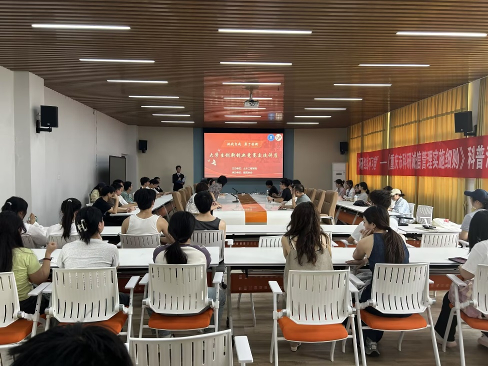 然后,闫磊以“挑战自我、勇于创新-大学生创新创业竞赛交流”为题,开启了指导学生参加挑战杯的征程,详细讲解了挑战杯的赛事框架、参赛要求、奖励措施以及注意事项等关键信息,希望同学们把高校创新教育与破解产业实际问题有机结合,分享了自己团队获得重庆市挑战杯大赛特等奖的经验。随后,他也对其他专业竞赛进行了一一介绍,希望同学们在报名参加各种赛事时,要理解规则、掌握赛制,通过组建学生团队及指导老师的沟通谋划认真选题、明确赛道,明确思路和课题后再不断打磨,帮助同学们理清思路,更充分地备赛,现场气氛热烈,同学们参与热情高涨,也积极向闫教授提问。