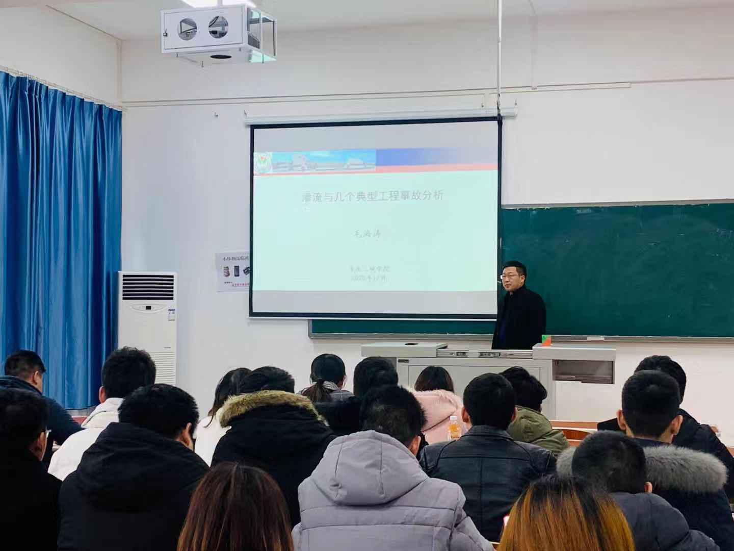 12月15日下午,44118太阳成tyc城集团毛海涛教授做了题为“渗流与几个典型案例工程事故分析”的学术报告,我院土木水利全体研究生参加了此次学术报告。