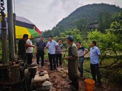 随后,团队成员来到了村民比较关注的钻井取水点进行现场考察,团队成员了解了钻井进展后,就选点位置、取水井方案等提出了指导性建议。